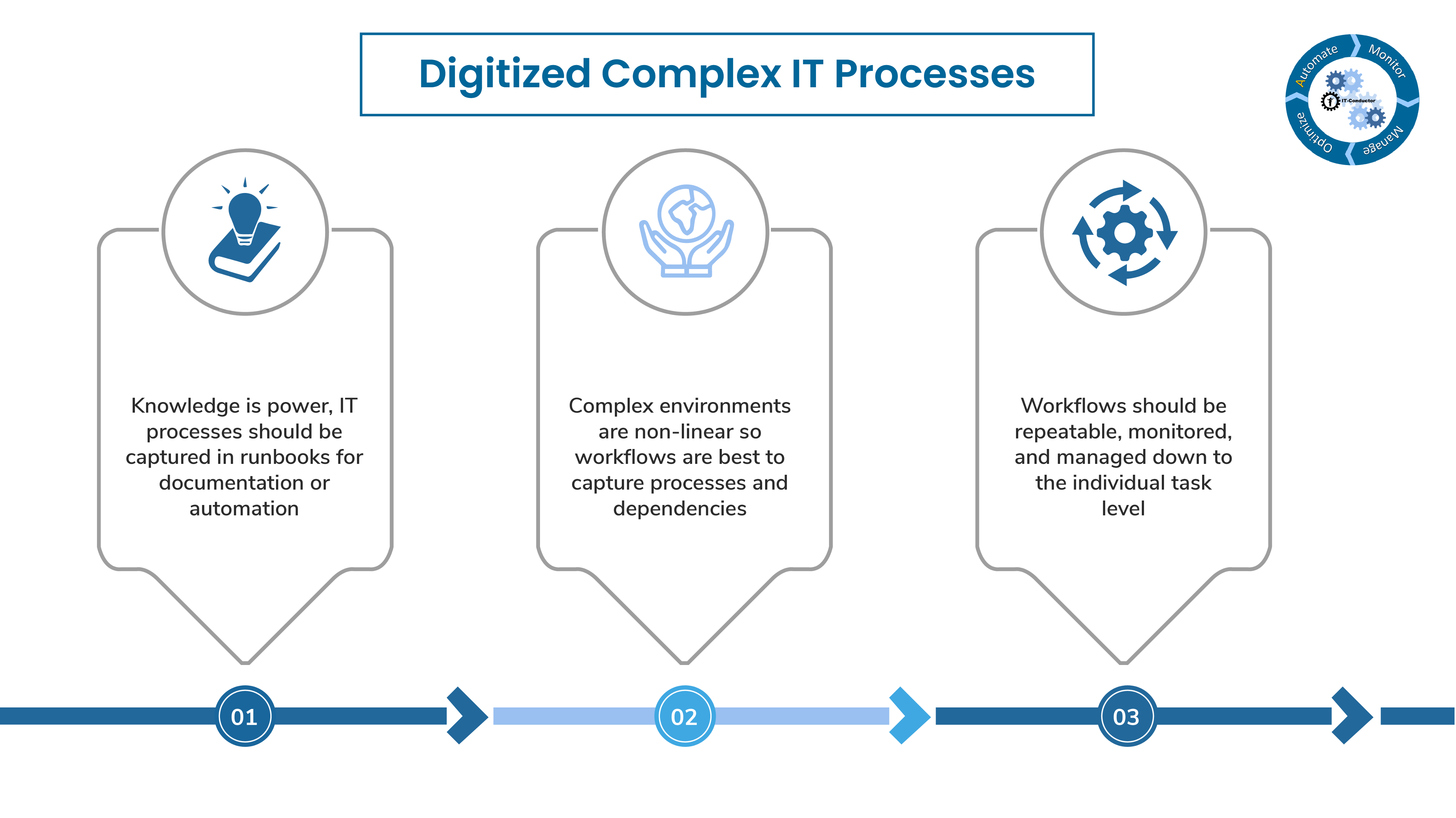 * **Efficient Workflow Capture:** In complex and non-linear IT environments, workflows are the most effective way to capture intricate processes and dependencies accurately. IT-Conductor's [Process Composer](https://docs.itconductor.com/overview/automation-concepts/definition-of-terms) empowers users to map out complex workflows visually, simplifying the understanding and management of critical tasks.