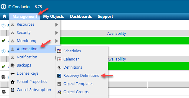 **Note:** If the recovery definitions are not available for use, contact [IT-Conductor Support](https://docs.itconductor.com/reference/support).