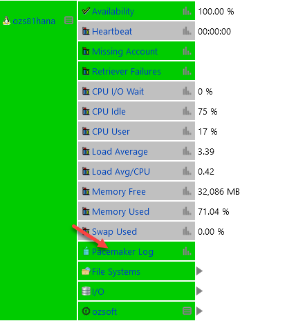 1. Select the Linux system to implement the automation and click **Pacemaker Log**.