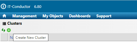In the Administrator dashboard, locate the “Clusters” panel. Then click to create a new cluster.