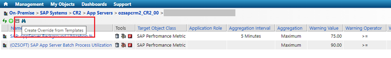 Upon creating the "Threshold Collector", a new Workload container will be created (if it doesn’t exist) and discovered under the SAP Grid; the threshold will also appear.