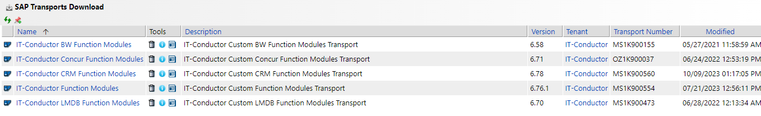 1. Navigate to the **IT-Conductor main menu → Support → Downloads** and download and import the following IT-Conductor SAP Transport Modules into the target SAP System (v6.76.1 IT-Conductor Function Module MS1K900554)