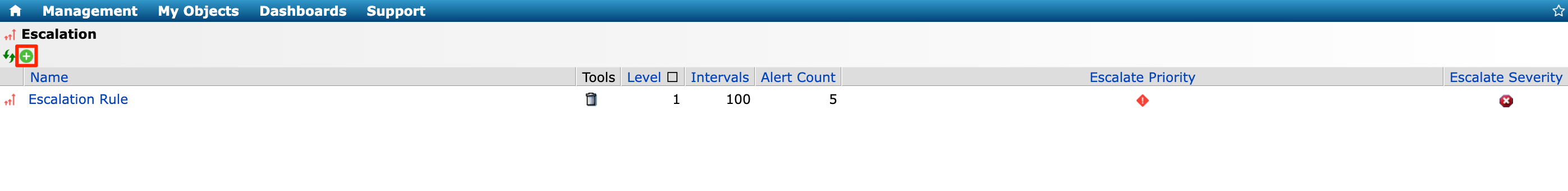 2. Click <img src="https://377464071-files.gitbook.io/~/files/v0/b/gitbook-x-prod.appspot.com/o/spaces%2FXhp08OmU8050PePmMgDt%2Fuploads%2Fgit-blob-7f816831472c5030e6dfbcb513035d87da645a67%2Fadd.png?alt=media" alt="" data-size="line"> **Create New Object** to start adding a new escalation rule.