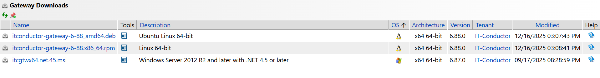 4. In IT-Conductor, navigate to **Support → Downloads →** [**Gateway Downloads**](https://service.itconductor.com/objectSavedSearch?OBJECT_Id=55792548)**.**