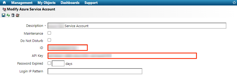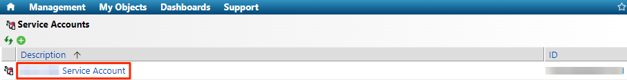 To obtain the Service Account ID and API Key in IT-Conductor, navigate to **Management → Security → Service Accounts**.