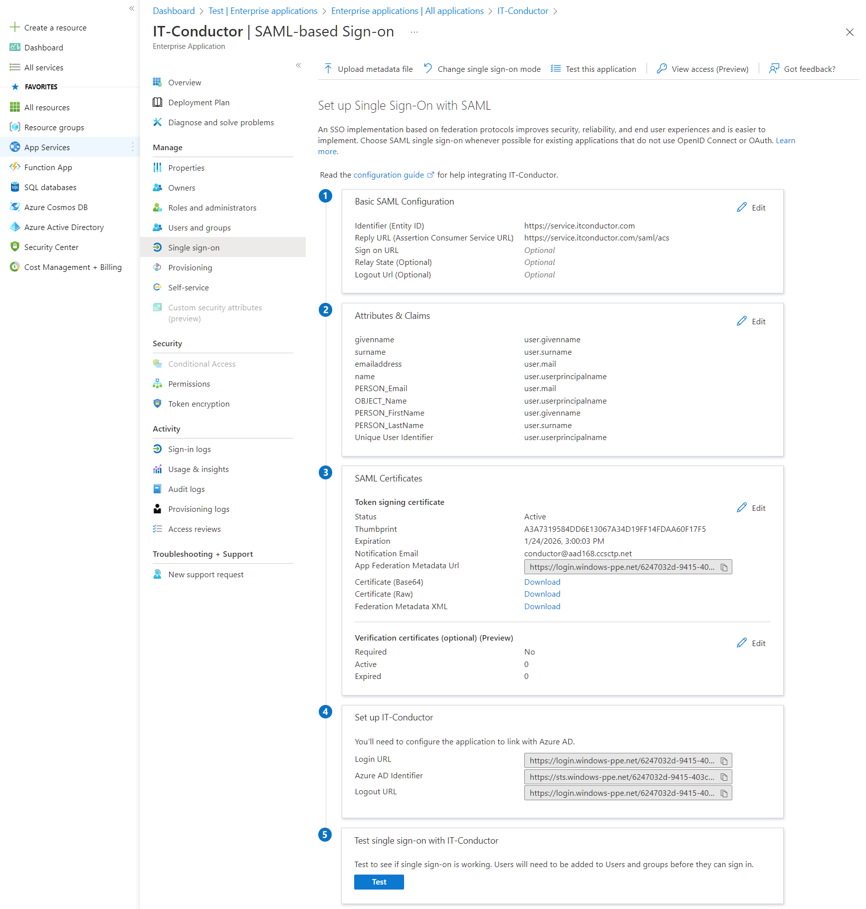 Click **Test** to validate SSO Configuration.